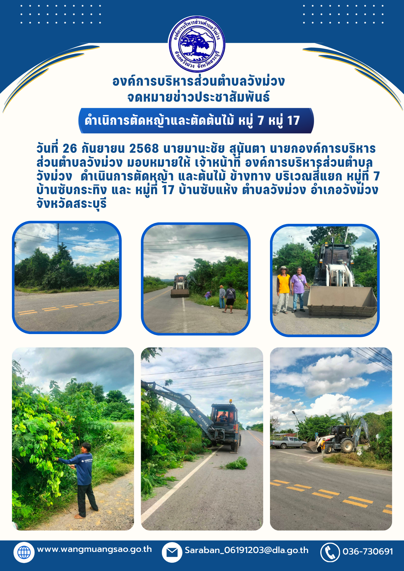 ดำเนินการตัดหญ้าและตัดต้นไม้ หมู่ 7 และหมู่ 17