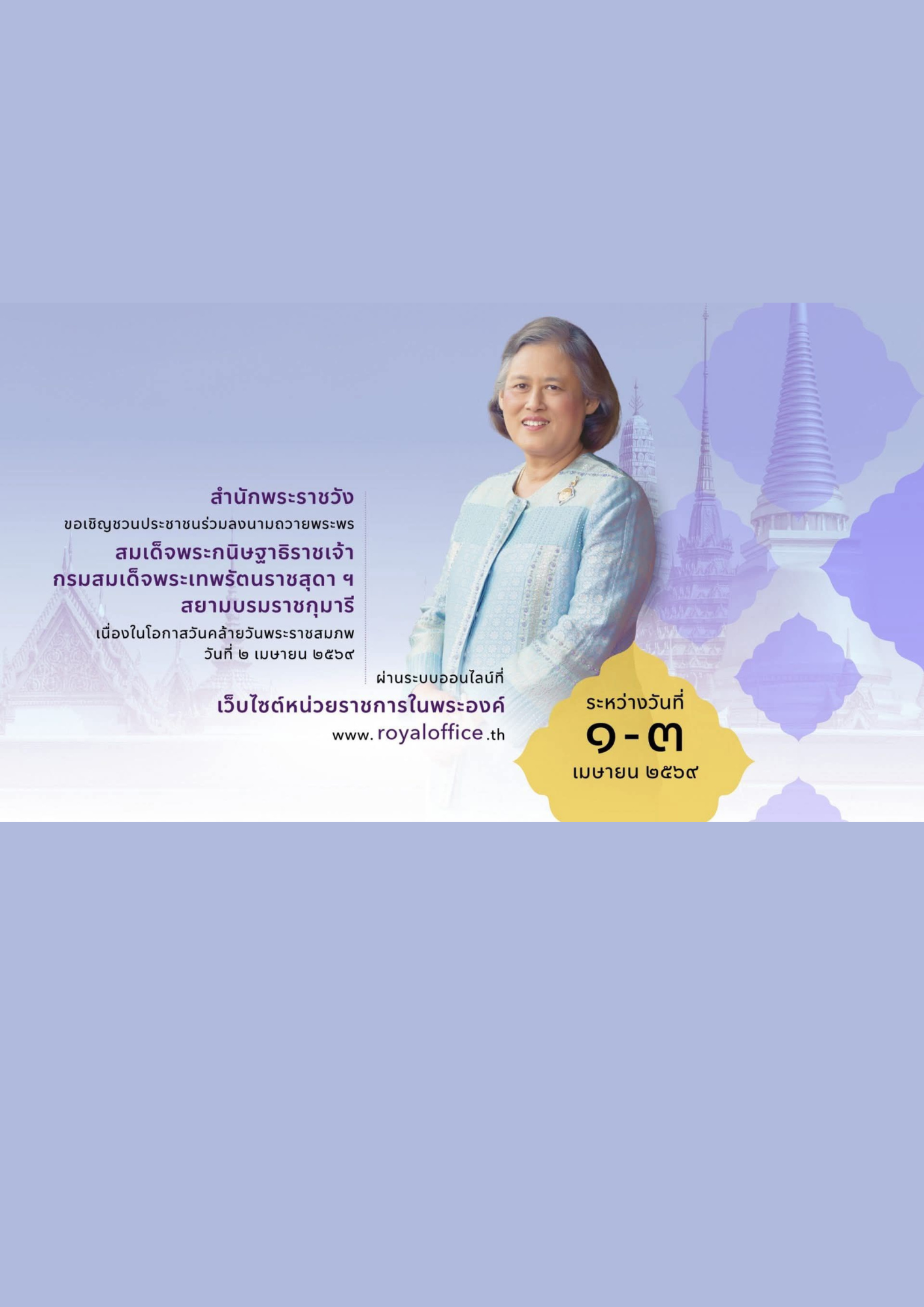 สำนักพระราชวัง ขอเชิญชวนประชาชนร่วมลงนามถวายพระพรช...
