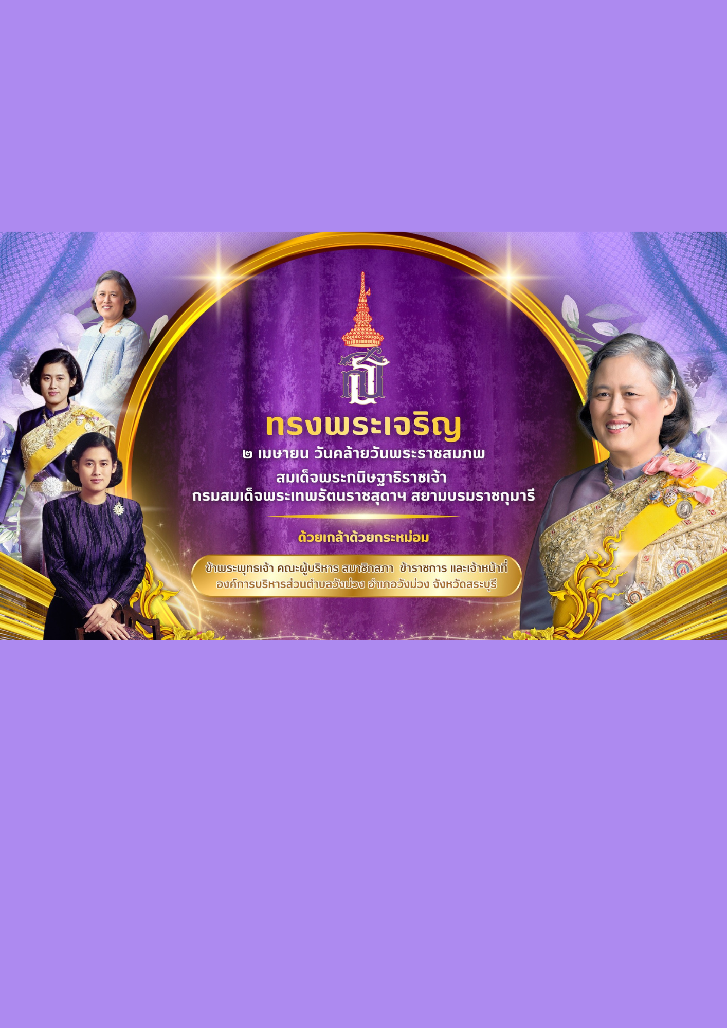 | 2 เมษายน 2569 วันคล้ายวันพระราชสมภพ สมเด็จพระกนิษฐาธิราชเจ้า กรมสมเด็จพระเทพรัตนราชสุดาฯ สยามบรมราชกุมารี ทรงพระเจริญ ด้วยเกล้าด้วยกระหม่อม ข้าพระพุทธเจ้า คณะผู้บริหาร สมาชิกสภา ข้าราชการ และเจ้าหน้าท |