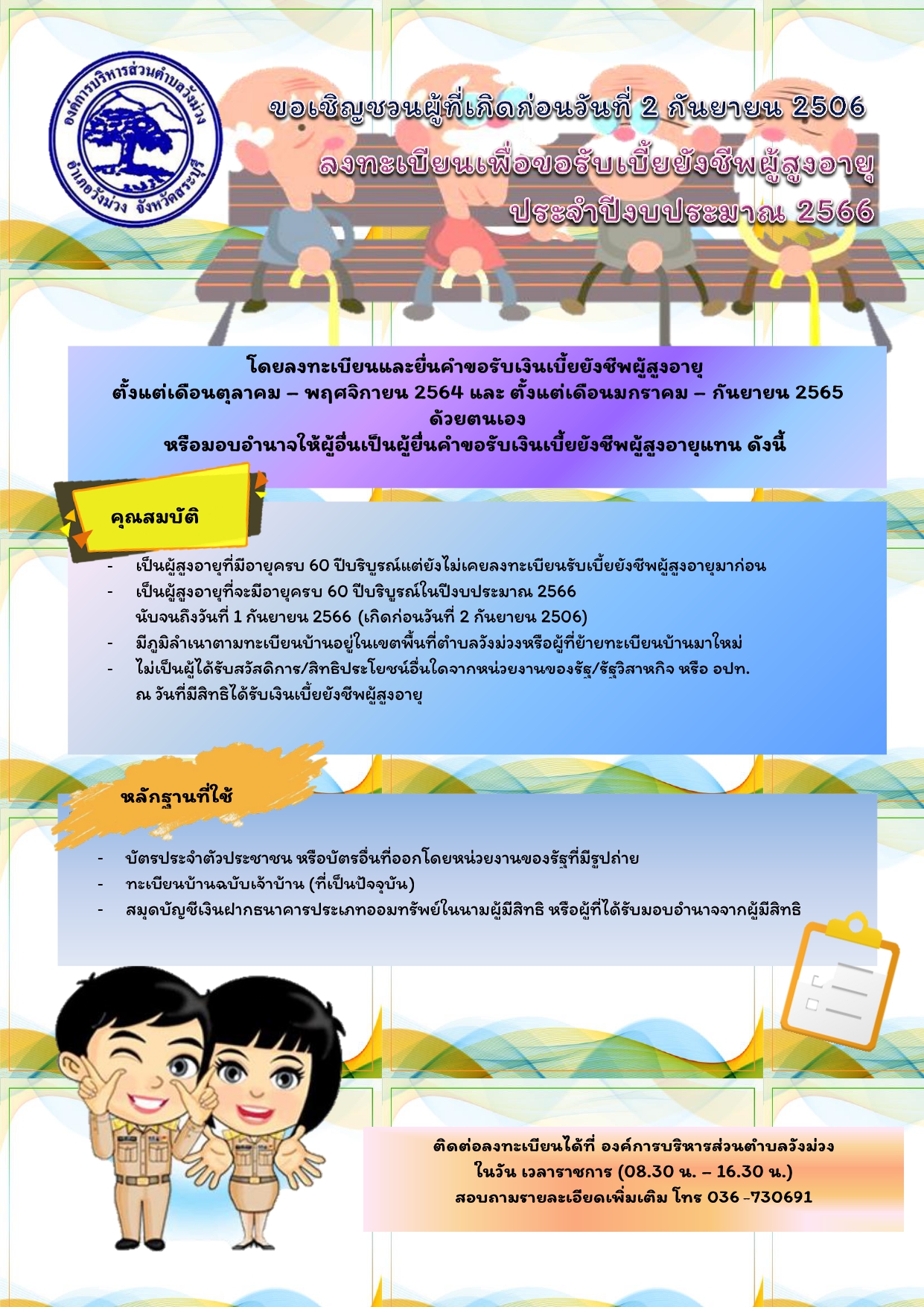 เปิดรับลงทะเบียนผู้มีสิทธิรับเงินเบี้ยยังชีพผู้สูงอายุประจำปีงบประมาณ 2564 |